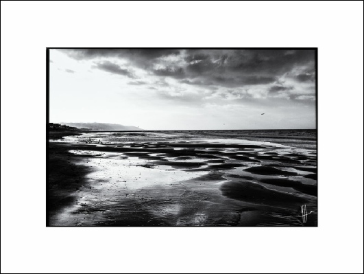 Ciel chargé de nuages, basse mer sur fond de fort coefficient de marée, froid et
