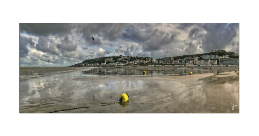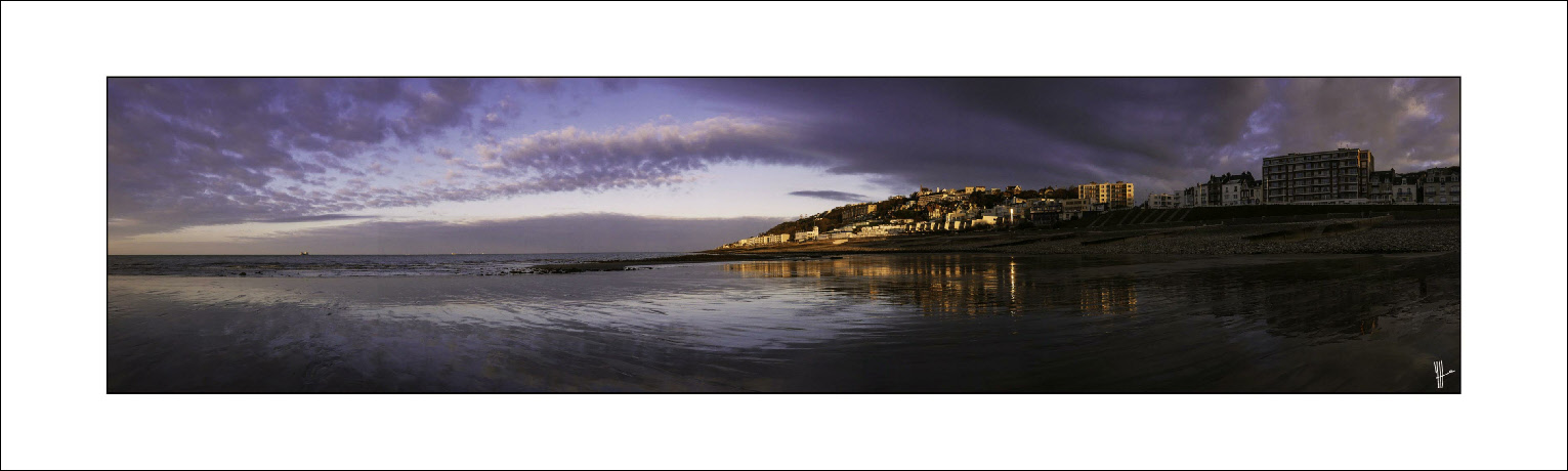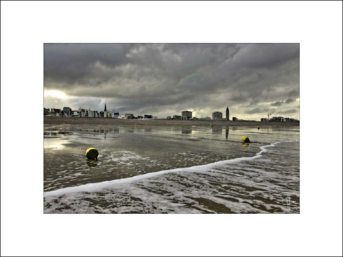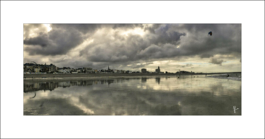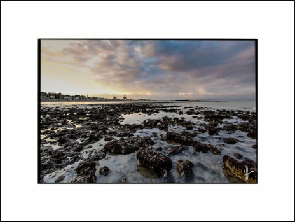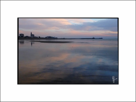 Le matin au lever du soleil sur le sable de la plage du Havre. A marée basse, lors de gros coefficients, loin du boulevard maritime, des cabanes et des restaurants le site redevient sauvage.
